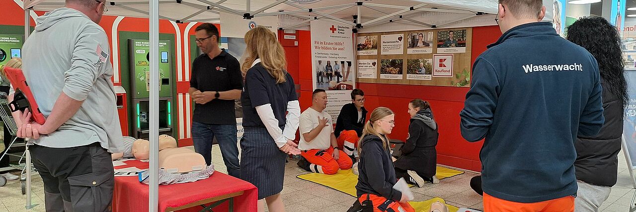 Gemeinsam mit verschiedenen Partnern wurde ein Aktionstag zur Wiederbelebung im Senftenberger Kaufland durchgeführt.
